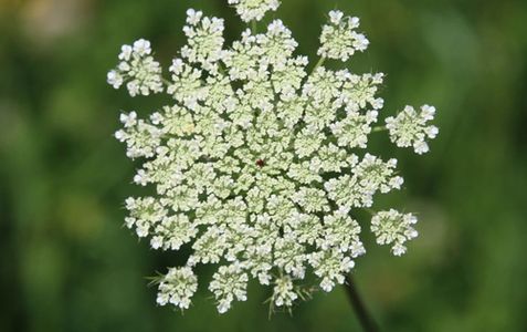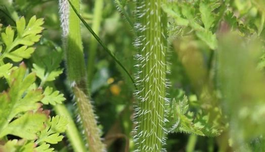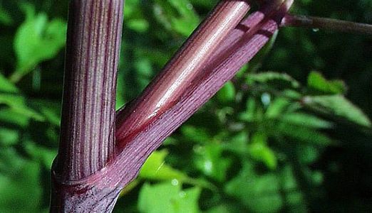 Water Hemlock a perennial herbaceous plant from the carrot family. It is one of the deadliest plants in the U.S. due to it being poisonous to humans and animals if ingested. It is found in wet places such as stream banks, ditches, marshes, meadows, and pastures. Water Hemlock grows from 2 to 6 feet in height and has narrow, serrated leaves. It has flowers that are small, white to greenish in color and have 15-30 small crowded clusters that form an almost bractless umbel. Water Hemlock looks similar to Queen Anne’s Lace since they are both members of the carrot family. The easiest way to tell them apart is by their stems. They are both hollow, but the Water Hemlock’s stem has purplish-green striations or grooves and is hairless, and the Queen Anne’s Lace stem is hairy and does NOT have purple striations.